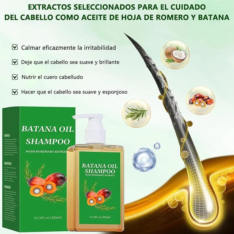 Principales activos: Aceite de Batana, Extracto de Romero, Gypsophila (saponaria natural)